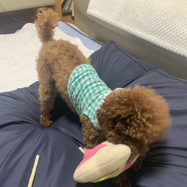 체취를 남기려고 하네요! 그리고 마치 사람이 쓰는 부드러운 방석 같이 적당히 푹신한 감이 있어서 좋아요.